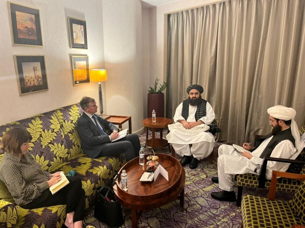 عبدالقهار بلخی سخنگوی وزارت امور خارجه طا-لبان میگوید که در این سفر، امیر خان متقی با هوگو شورتر سفیر بریتانیا برای افغانستان در دوحه دیدار و در باره موضوعات مورد علاقه گفتوگو کرده است.
