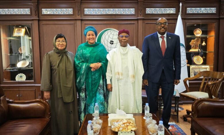 حسین ابراهیم طاهه دبیرکل سازمان همکاری اسلامی روز گذشته در مقر دبیرخانه عمومی این سازمان در جده با خانم امینه محمد معاون دبیرکل سازمان ملل متحد دیدار و گفتوگو کرد.