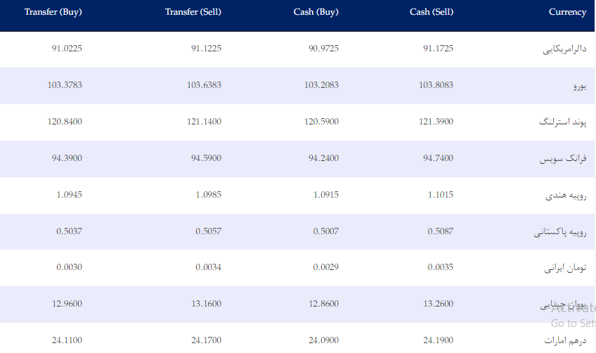 | دالرامریکایی | ۹۱٫۱۷۲۵ | ۹۰٫۹۷۲۵ | ۹۱٫۱۲۲۵ | ۹۱٫۰۲۲۵ |