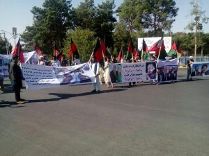 به گزارش خبرگزاری دید، این اعتراض صبح امروز صورت گرفته و معترضان با شعارهای «رهبرا برگرد، در انتظار است ملت! رهبرا برگرد، ماییم و هزار ذلت!» خواهان برگشت آقای دوستم و آزادی نظامالدین قیصاری شدند.