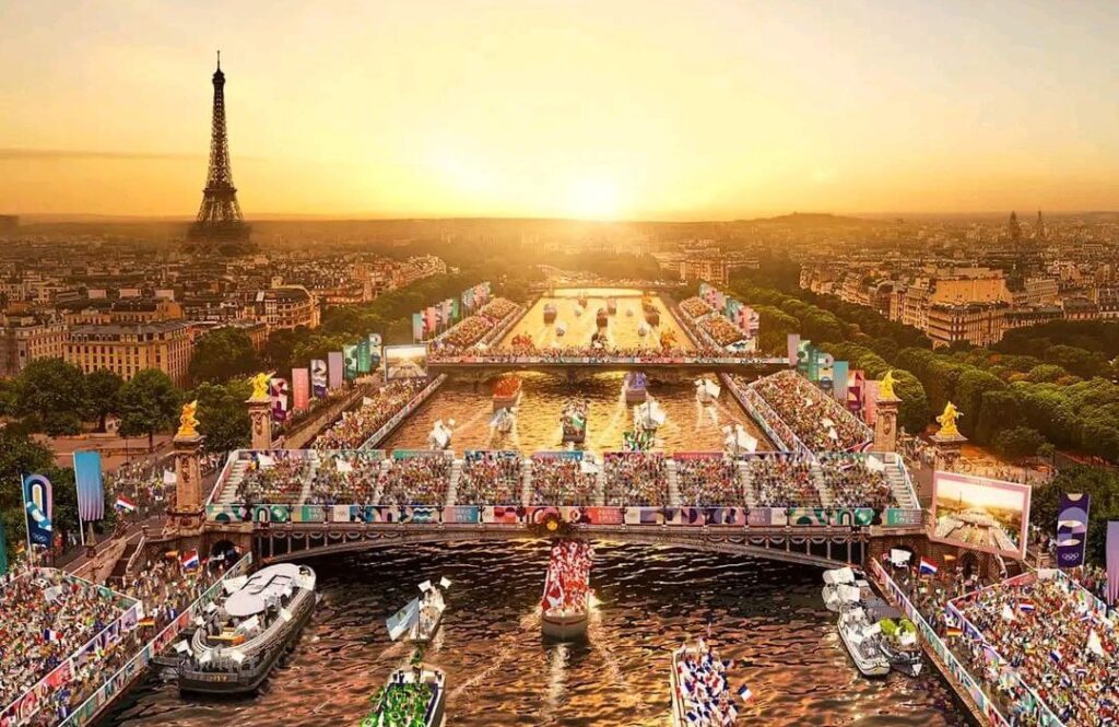 مراسم افتتاحیه بازیهای المپیک پاریس برای اولین بار در طول تاریخ در خارج از یک استادیوم ورزشی برگزار شد. این نمایش ۳ ساعت و ۴۵ دقیقهای شامل رژه هیئتهای ورزشی کشورها در یک مسیر ۶ کیلومتری با ۸۵ کشتی روی رودخانه سن می شد.