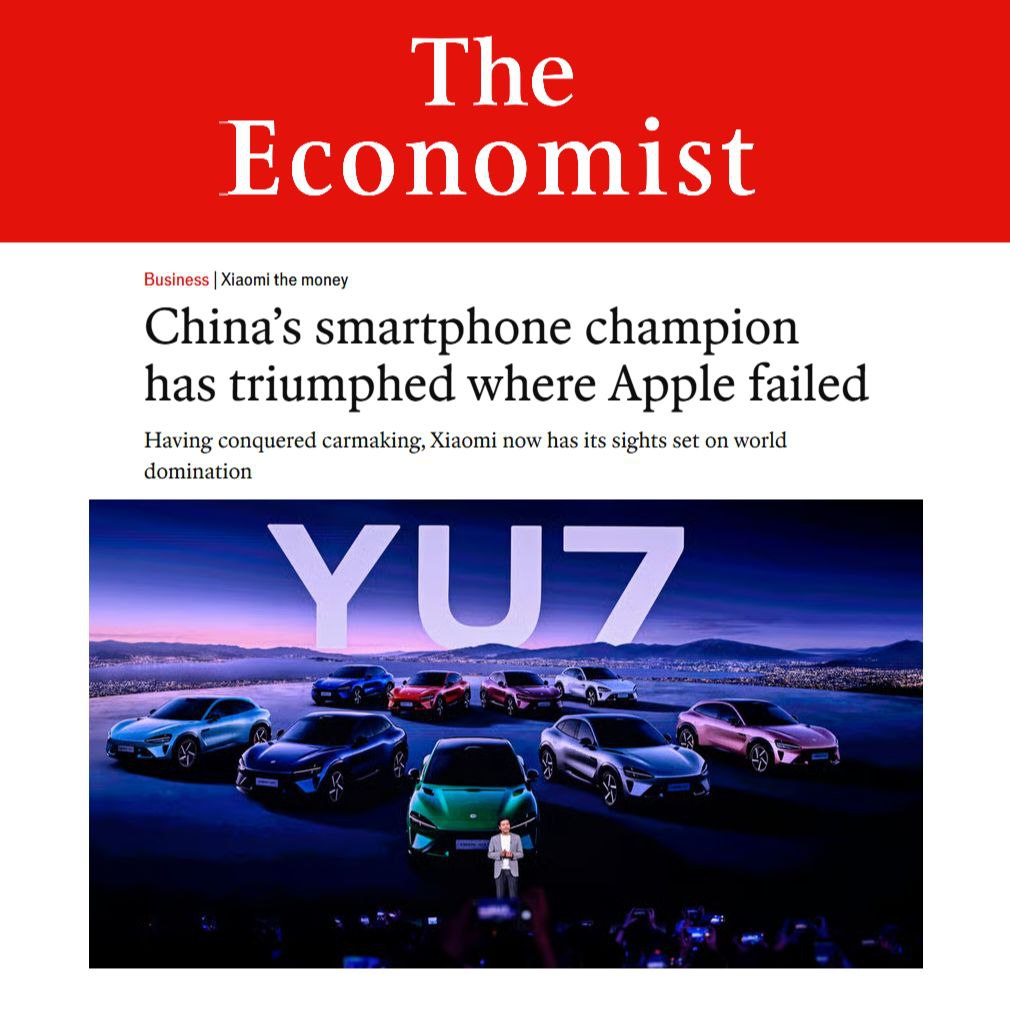 اکونومیست در تحلیل خود تأکید کرده است که شیائومی نهتنها در صنعت موبایل، بلکه در عرصه موترهای برقی و هوش مصنوعی نیز توانسته جایگاه ویژهای بهدست آورد؛ جایی که اپل، با وجود برتری در تکنولوژی، هنوز نتوانسته موفقیتی عملی کسب کند.