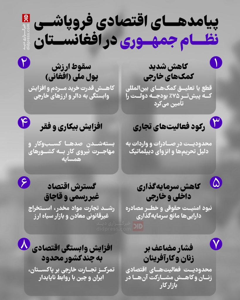 ۱۲:۵۵ ب.ظ ۲۵ اسد ۱۴۰۴۰ 1 کمتر از یک دقیقه اینفوگرافیک پیامدهای اقتصادی فروپاشی نظام جمهوری در افغانستان ۱۲:۵۵ ب.ظ ۲۵ اسد ۱۴۰۴۰ 1 کمتر از یک دقیقه اشتراک گذاری فیس بوک X پیام رسان پیام رسان واتس آپ تلگرام اشتراک گذاری از طریق ایمیل چاپ