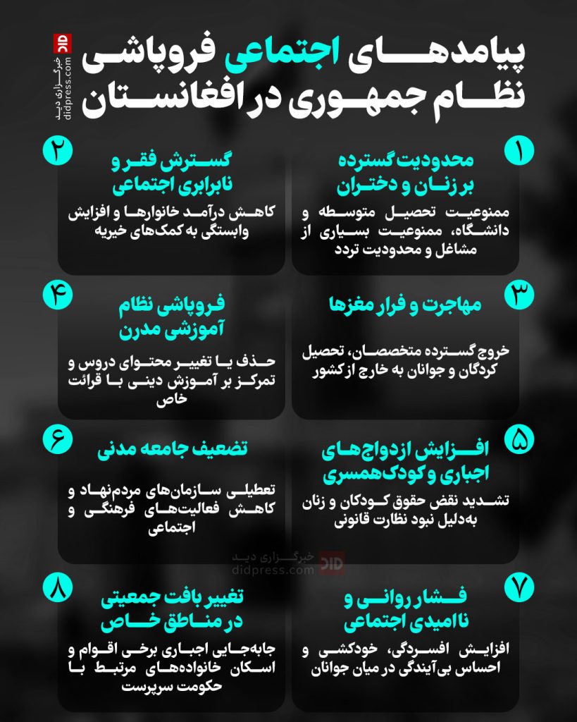 ۹:۴۹ ق.ظ ۳۰ اسد ۱۴۰۴۰ 1 کمتر از یک دقیقه اینفوگرافیک پیامد های اجتماعی فروپاشی نظام جمهوری در افغانستان ۹:۴۹ ق.ظ ۳۰ اسد ۱۴۰۴۰ 1 کمتر از یک دقیقه اشتراک گذاری فیس بوک X پیام رسان پیام رسان واتس آپ تلگرام اشتراک گذاری از طریق ایمیل چاپ