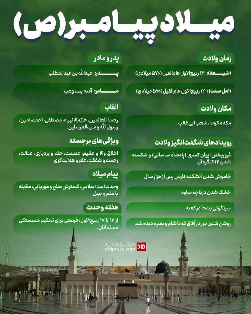 ۱۲:۴۷ ب.ظ ۲۰ سنبله ۱۴۰۴۰ 2 کمتر از یک دقیقه اینفوگرافیک میلاد پیامبر (ص) ۱۲:۴۷ ب.ظ ۲۰ سنبله ۱۴۰۴۰ 2 کمتر از یک دقیقه اشتراک گذاری فیس بوک X پیام رسان پیام رسان واتس آپ تلگرام اشتراک گذاری از طریق ایمیل چاپ
