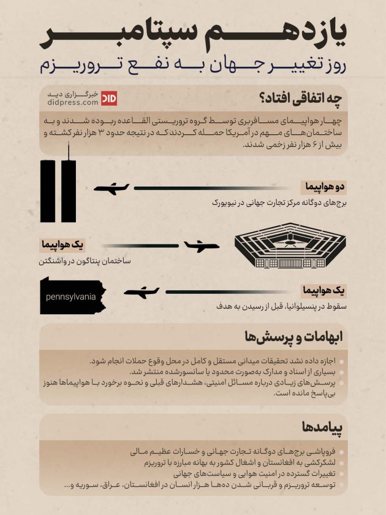 ۱۲:۴۸ ب.ظ ۲۰ سنبله ۱۴۰۴۰ 1 کمتر از یک دقیقه اینفوگرافیک یازدهم سپتامبر؛ روز تغییر جهان به نفع تروریزم برچسب هاSeptember11 ۱۲:۴۸ ب.ظ ۲۰ سنبله ۱۴۰۴۰ 1 کمتر از یک دقیقه اشتراک گذاری فیس بوک X پیام رسان پیام رسان واتس آپ تلگرام اشتراک گذاری از طریق ایمیل چاپ
