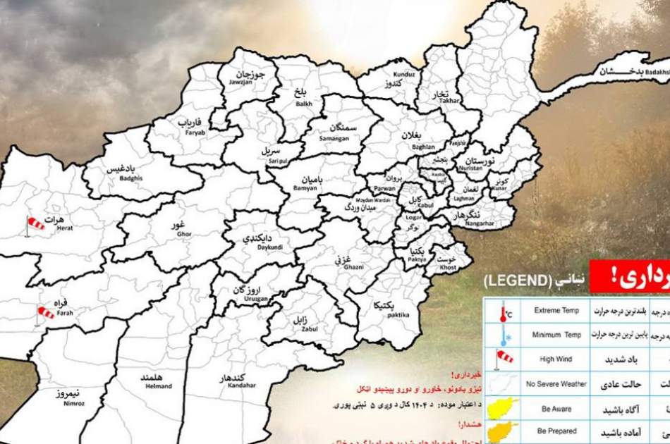 روز آفتابی افغانستان؛ بدون هشدار بارندگی و با هوایی پایدار