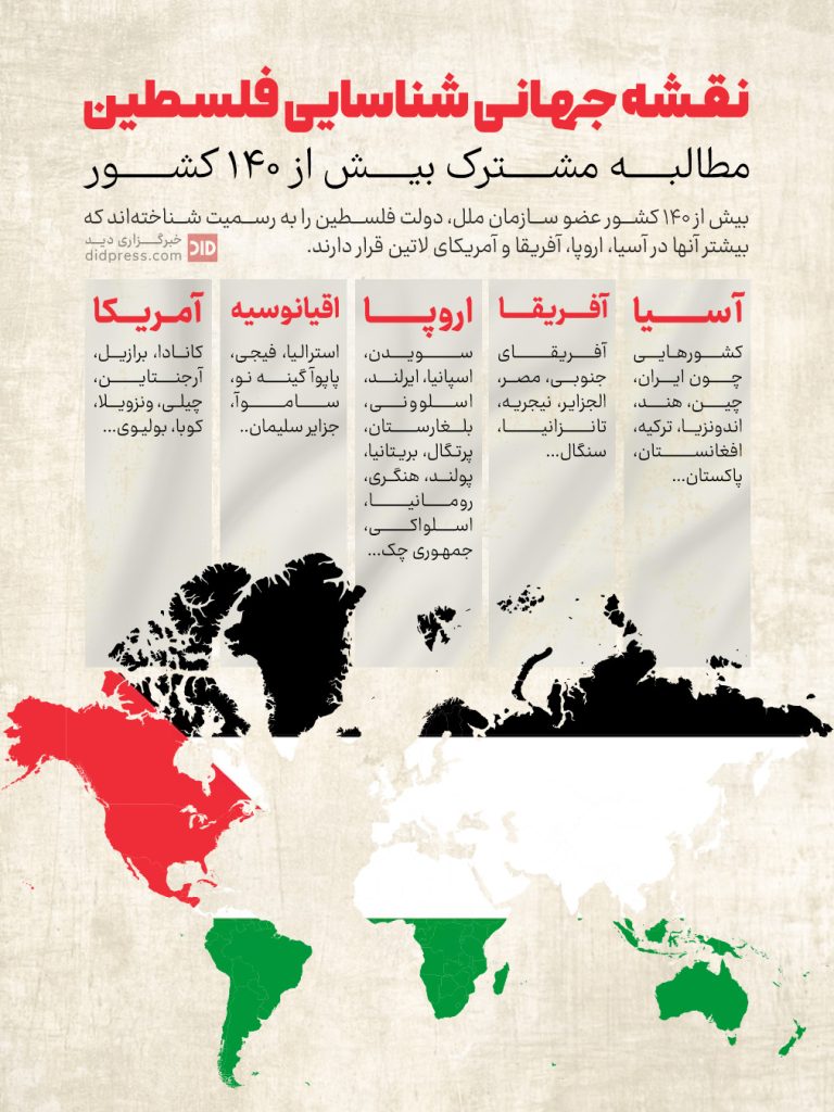 نقشه جهانی شناسایی فلسطین – اینفوگرافیک