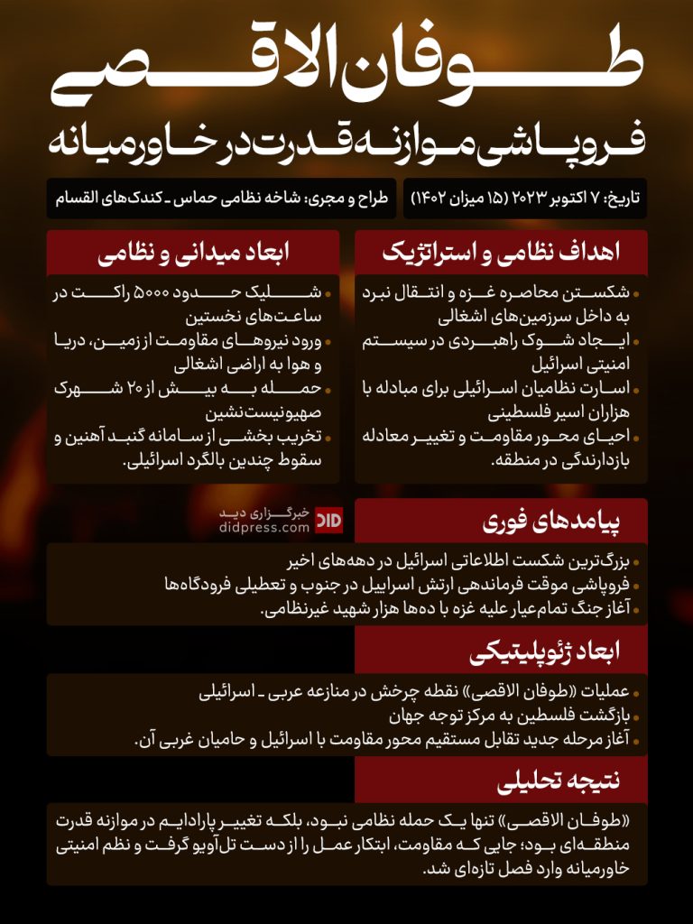 اینفوگرافیک طوفان الاقصی؛ فروپاشی موازنه قدرت در خاورمیانه