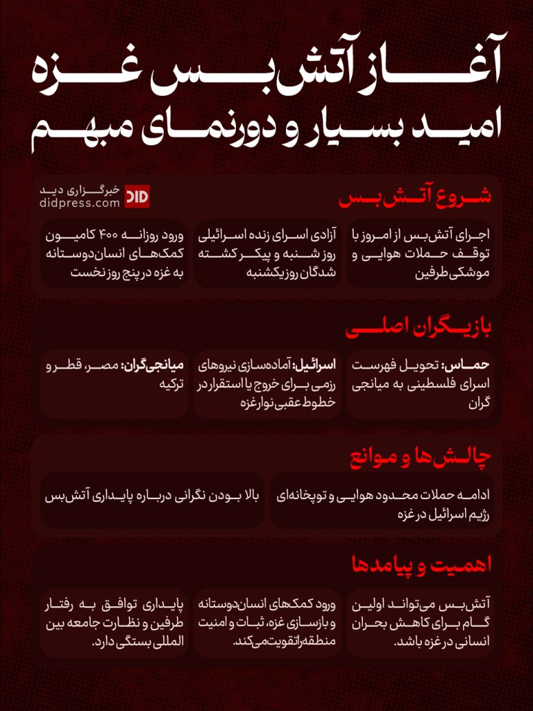 ۴:۵۸ ب.ظ ۱۷ میزان ۱۴۰۴۰ 1 کمتر از یک دقیقه اینفوگرافیک آغاز آتشبس غزه؛ امید بسیار و دورنمای مبهم – اینفوگرافیک برچسب هاآتشبس اینفوگرافیک غزه ۴:۵۸ ب.ظ ۱۷ میزان ۱۴۰۴۰ 1 کمتر از یک دقیقه اشتراک گذاری فیس بوک X پیام رسان پیام رسان واتس آپ تلگرام اشتراک گذاری از طریق ایمیل چاپ