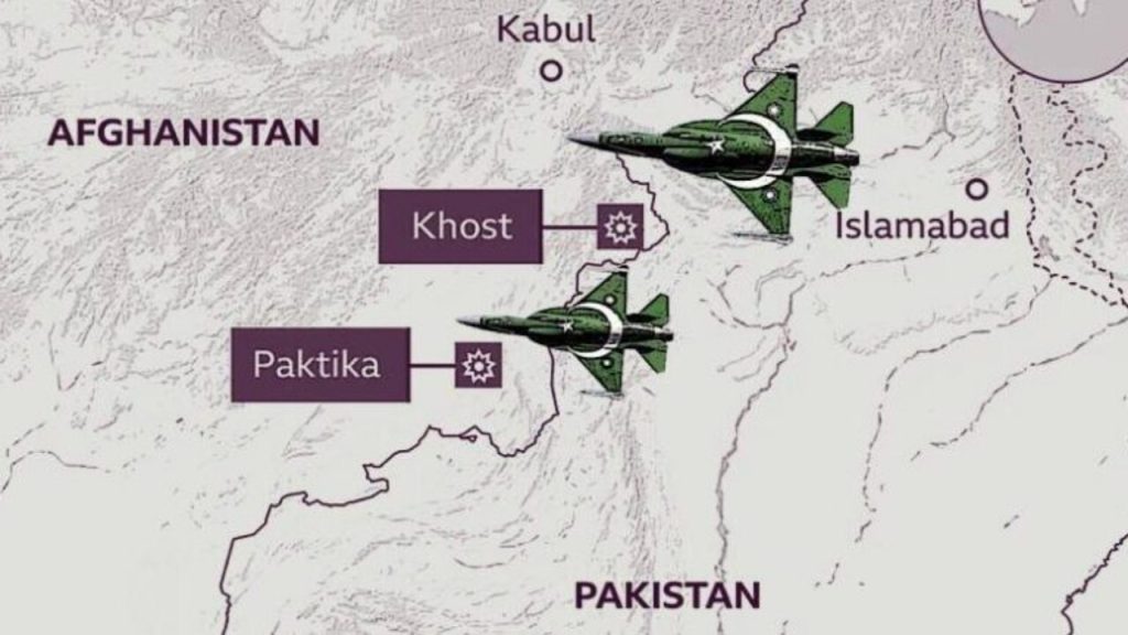 شامگاه پنجشنبه (۱۷ میزان) جنگندههای ارتش پاکستان مناطقی در کابل و پکتیکا را هدف قرار دادند. وزارت دفاع حکومت طالبان این حملات را محکوم و آن را نقض آشکار حاکمیت افغانستان خواند. امیرخان متقی، سرپرست وزارت خارجه طالبان، در نشست خبری در دهلینو، پاکستان را به عبرت گرفتن از سرنوشت شوروی، آمریکا و ناتو فراخواند و حملات را «اقدامی غیرمسوولانه» توصیف کرد.