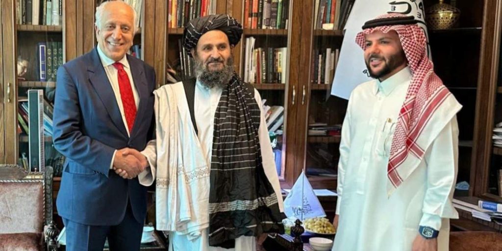 دیدار ملا برادر با رئیس شرکت سعودی «دلتا انترنشنل» در حضور خلیلزاد