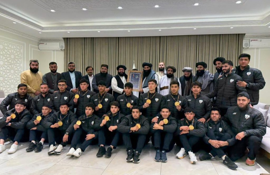 به‌دنبال قهرمانی تاریخی تیم ملی فوتسال نوجوانان افغانستان در رقابت‌های آسیایی، سراج‌الدین حقانی، وزیر امور داخله حکومت طالبان، در دیدار با بازیکنان و مربیان این تیم، از آنان قدردانی کرد.