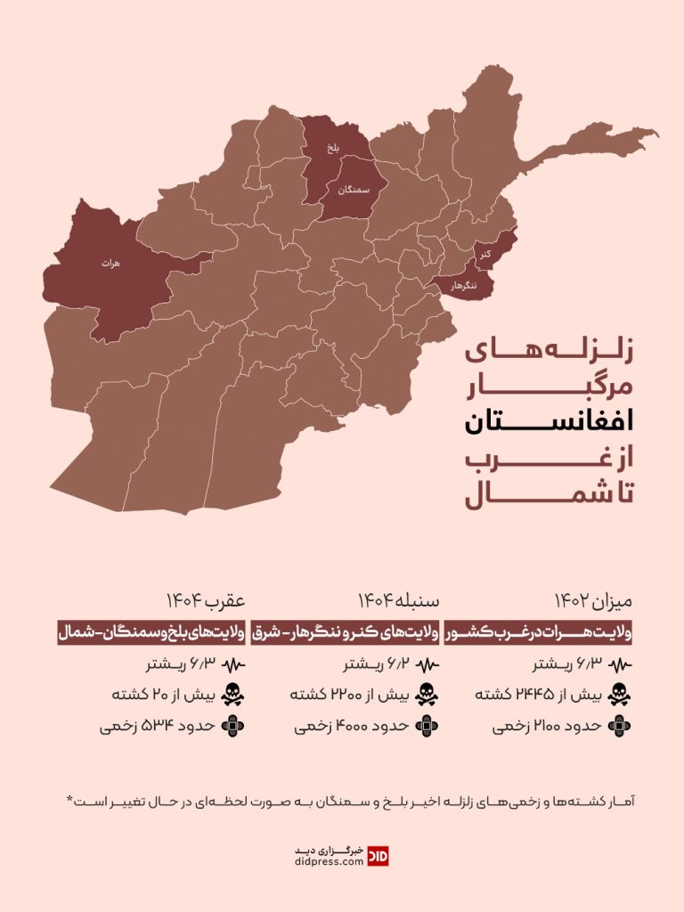 ۳:۱۶ ب.ظ ۱۲ عقرب ۱۴۰۴۰ 1 کمتر از یک دقیقه اینفوگرافیک زلزلههای مرگبار افغانستان از غرب تا شمال – اینفوگرافیک برچسب هااینفوگرافیک زلزله شمال کشور ۳:۱۶ ب.ظ ۱۲ عقرب ۱۴۰۴۰ 1 کمتر از یک دقیقه اشتراک گذاری فیس بوک X پیام رسان پیام رسان واتس آپ تلگرام اشتراک گذاری از طریق ایمیل چاپ