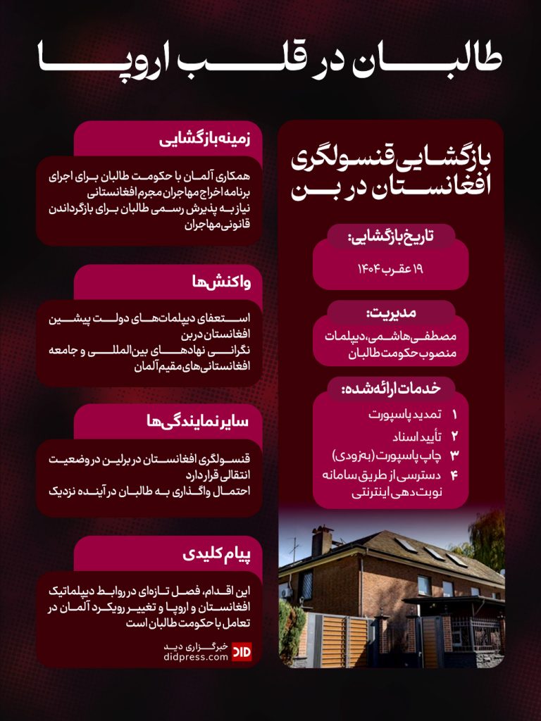 ۱۲:۴۷ ب.ظ ۱۹ عقرب ۱۴۰۴۰ 0 کمتر از یک دقیقه اینفوگرافیک طالبان در قلب اروپا؛ بازگشایی قنسولگری افغانستان در بن – اینفوگرافیک برچسب هااینفوگرافیک بن قنسولگری ۱۲:۴۷ ب.ظ ۱۹ عقرب ۱۴۰۴۰ 0 کمتر از یک دقیقه اشتراک گذاری فیس بوک X پیام رسان پیام رسان واتس آپ تلگرام اشتراک گذاری از طریق ایمیل چاپ