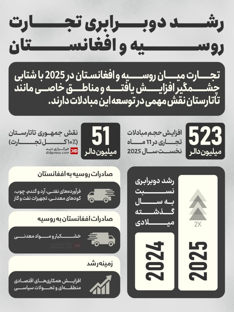 خانه/اینفوگرافیک/رشد دوبرابری تجارت روسیه و افغانستان اینفوگرافیک رشد دوبرابری تجارت روسیه و افغانستان ۱۲:۳۳ ب.ظ ۲۵ قوس ۱۴۰۴۰ 0 کمتر از یک دقیقه برچسب هاافغانستان اینفوگرافیک تجارت روسیه ۱۲:۳۳ ب.ظ ۲۵ قوس ۱۴۰۴۰ 0 کمتر از یک دقیقه اشتراک گذاری فیس بوک X پیام رسان پیام رسان واتس آپ تلگرام اشتراک گذاری از طریق ایمیل چاپ