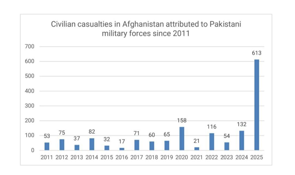بر اساس این گزارش، بیش از ۸۵ درصد تلفات در فاصله ۱۰ تا ۱۷ اکتوبر ۲۰۲۵ و هم‌زمان با تشدید تنش‌های نظامی میان نیروهای امنیتی حاکم افغانستان و ارتش پاکستان رخ داده‌است.