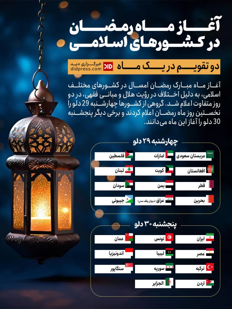خانه/اینفوگرافیک/آغاز ماه رمضان در کشورهای اسلامی؛ دو تقویم در یک ماه – اینفوگرافیک اینفوگرافیک آغاز ماه رمضان در کشورهای اسلامی؛ دو تقویم در یک ماه – اینفوگرافیک ۵:۲۳ ب.ظ ۲۹ دلو ۱۴۰۴۰ 0 کمتر از یک دقیقه برچسب هااینفوگرافیک رمضان ۵:۲۳ ب.ظ ۲۹ دلو ۱۴۰۴۰ 0 کمتر از یک دقیقه اشتراک گذاری فیس بوک X پیام رسان پیام رسان واتس آپ تلگرام اشتراک گذاری از طریق ایمیل چاپ