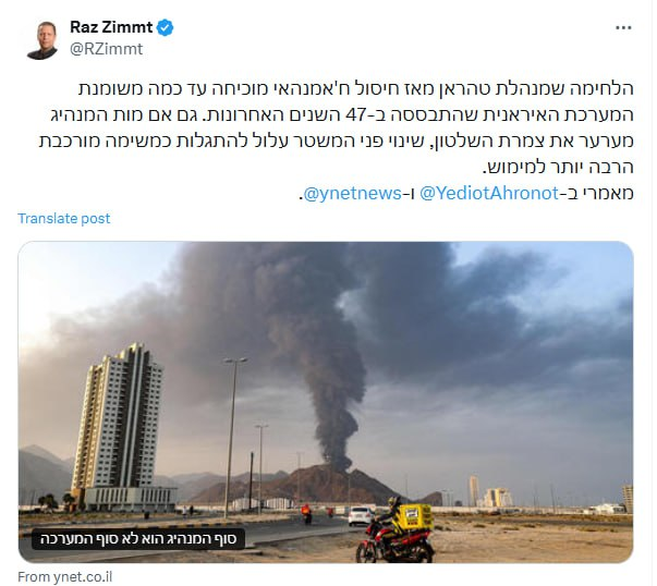 خبرگزاری دید: راز زیمت، کارشناس ارشد مسائل ایران در اسرائیل، در تحلیلی تازه نوشت که نحوه مدیریت جنگ از سوی تهران پس از ترور رهبر انقلاب اسلامی نشان می‌دهد ساختار حکومتی ایران همچنان منسجم و کارآمد عمل می‌کند.