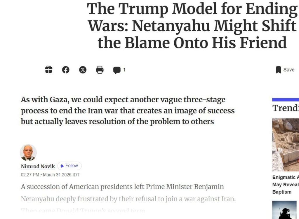 هاآرتص همچنین مدعی شد که ترامپ به دنبال خروج از «باتلاقی» است که به گفته این رسانه، نتانیاهو به دلیل ملاحظات شخصی خود، او را در آن گرفتار کرده است.