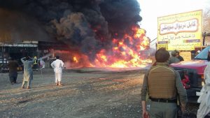 مسئولان محلی ننگرهار خبر داده که در اثر آتش گرفتن یک تانکر تیل در شاهراه تورخم – جلال آباد دو تن جان داده، دو تن دیگر زخمی شده و دهها دکان نیز حریق شدهاند.