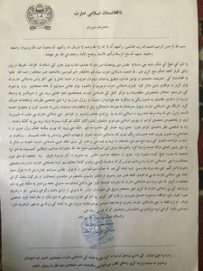 به گزارش خبرگزاری دید، این اعلامیه بر برخی دروازههای خانه ساکنان برخی ولسوالیهای دور دست ولایت هرات، نصب شده است.