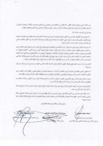 در بخشی از این نامه مرقوم رفته است که «این حلقات حتی نیروهای دهشت‌افگن را که قاتلین مردم و متحدین بین‌المللی افغانستان هستند، مکافات داده و نیروهای خدمتگذار به وطن را با نیرنگ حبس و شکنجه می‌کنند.»