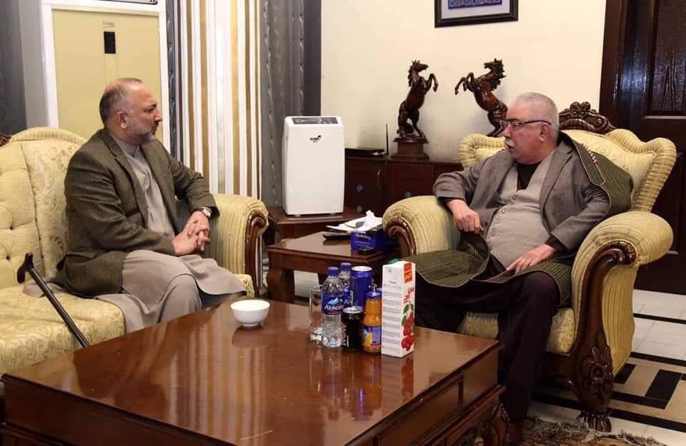 دیدار جنرال دوستم با حنیف اتمر؛ محور بحث انتخابات و مذاکرات صلح
