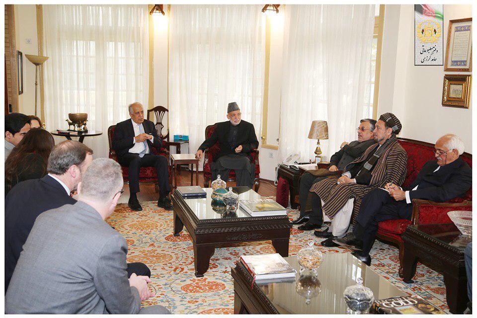 زلمی خلیلزاد نماینده ویژه امریکا برای روند صلح افغانستان با حامد کرزی رییس جمهور پیشین کشور و جمعی از سیاسیون در محور روند صلح دیدار کرد.