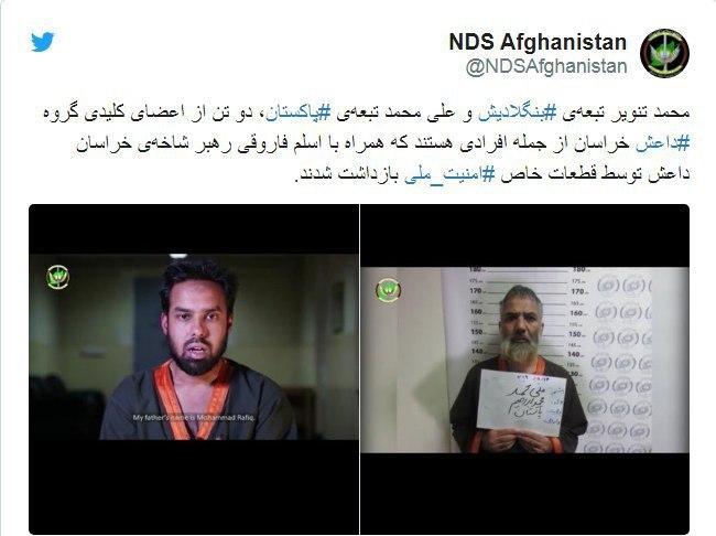 ریاست امنیت ملی در توییتی تازه، خبر داده که یک عضو کلیدی بازداشت شده گروه داعش با اسلم فاروقی رهبر شاخه خراسان این گروه، شهروند بگلادیش است.