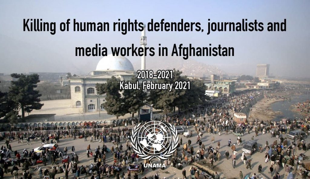 در گزارش آمده است: از ۱۲ سپتمبر ۲۰۲۰، تا ۳۱ جنوری ۲۰۲۱، حدود ۱۱ مدافع حقوق بشر و کارمندان رسانهای در حملات هدفمند در افغانستان کشته شدهاند. … در نتیجه فضای حقوق بشری و رسانهای تغییر نموده … و بسیاری به شمول شخصیتهای سرشناس از کشور فرار کردهاند.