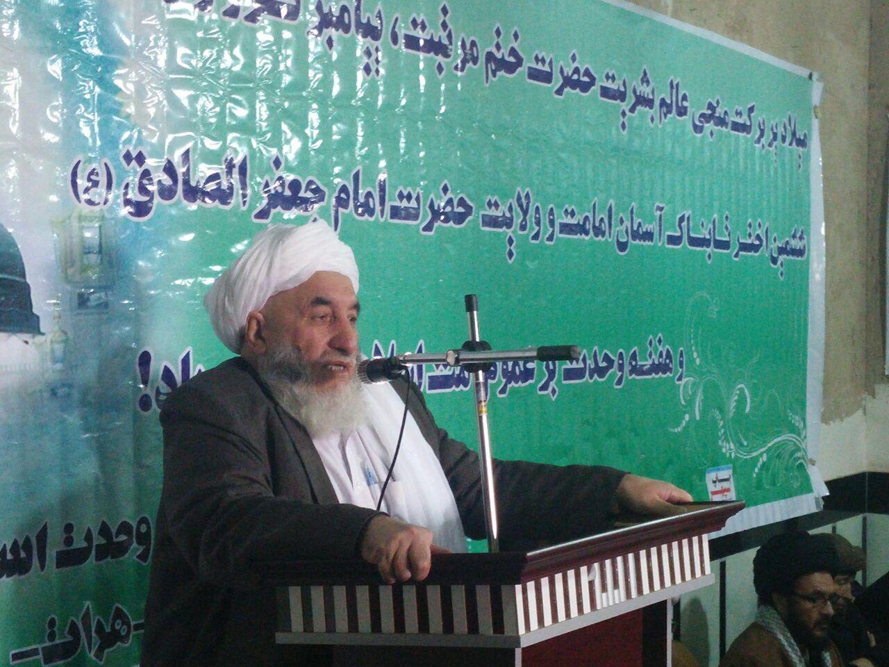 نا وقت روز گذشته مراسم تجلیل از هفته وحدت، سالیاد ولادت پیامبر اسلام و امام صادق با حضور علمای دین، مقامات دولتی و اقشار مختلف مردم در دفتر یکی از احزاب سیاسی در ولایت هرات برگزار شد