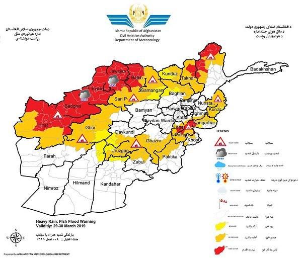 مسئولان ریاست هواشناسی از احتمال ریزش باران نسبتاً شدید همراه با سیلاب در چندین ولایت کشور خبر داده است