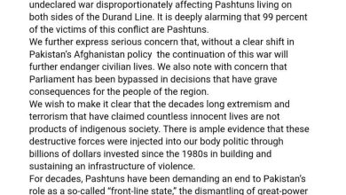 جنبش دموکراتیک ملی پاکستان: درگیریهای مرزی با افغانستان فورا متوقف شود